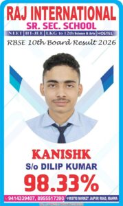 राजस्थान माध्यमिक शिक्षा बोर्ड की दसवीं की परीक्षा में पूरे राजस्थान में