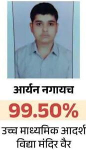 अपनी सफलता का श्रेय अपने माता पिता तथा विद्यालय के गुरुजनों को देते है । इसी प्रकार कसवा वैर निवासी आर्यन नगाइच ने 99.50प्रतिशत अंक प्राप्त कर आदर्श विधा मंदिर माध्यमिक विद्यालय वैर का नाम रोशन किया ।इसी प्रकार गाँव झारोटी नंगला बुर्जा निवासी दिलीप चौधरी अध्यापक के पुत्र कनिष्क चौधरी को 10 वीं बोर्ड परीक्षा में 98.33% अंकों से उत्तीर्ण की।