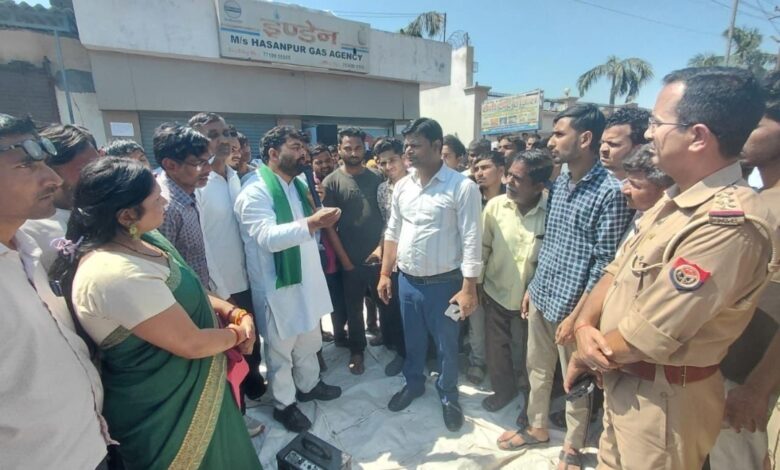 अमरोहा हसनपुर नगर में रसोई गैस सिलेंडरों की भारी किल्लत को लेकर बुधवार की सुबह उपभोक्ताओं के सब्र का बांध टूट गया। कई दिनों से एजेंसी के चक्कर काट रहे परेशान उपभोक्ताओं ने सड़क पर खाली सिलेंडर रखकर जाम लगा दिया और जमकर नारेबाजी की। हंगामे की सूचना मिलते ही बीआर अंबेडकर के राष्ट्रीय अध्यक्ष डॉ. दिग्विजय सिंह भाटी अपने कार्यकर्ताओं के साथ मौके पर पहुंचे और उपभोक्ताओं की समस्याओं को लेकर नाराजगी जाहिर की।