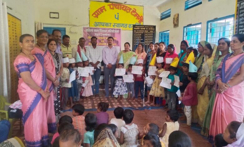 जनपद सदस्य धन्नू उईके और सहायक संचालक विवेक उईके ने सभी अभिभावकों को अपने-अपने बच्चों को शासकीय शालाओं में पढ़ने भेजने के लिए प्रेरित किया। पर्यवेक्षक अर्चना तिवारी ने बताया कि अतिथियों ने आंगनवाड़ी केंद्र में शाला पूर्व शिक्षा प्राप्त कर रहे 5 से 6 वर्ष आयु वर्ग के बच्चों को “विद्यारंभ प्रमाण-पत्र” प्रदान किए। इस अवसर पर बच्चों का तिलक लगाकर एवं गुलदस्ता भेंट कर सम्मान किया गया, जिससे कार्यक्रम में उत्साह का माहौल बना रहा।जनप्रतिनिधियों एवं शिक्षकों ने बच्चों के उज्ज्वल भविष्य की कामना करते हुए नियमित शिक्षा ग्रहण करने के लिए प्रेरित किया। इस अवसर पर आंगनवाड़ी कार्यकर्ता शकुन बारस्कर, गीता बारस्कर, कविता खातरकर, रिंकू पंडोले, लता कामतकर व सहायिका उपस्थित हुई।