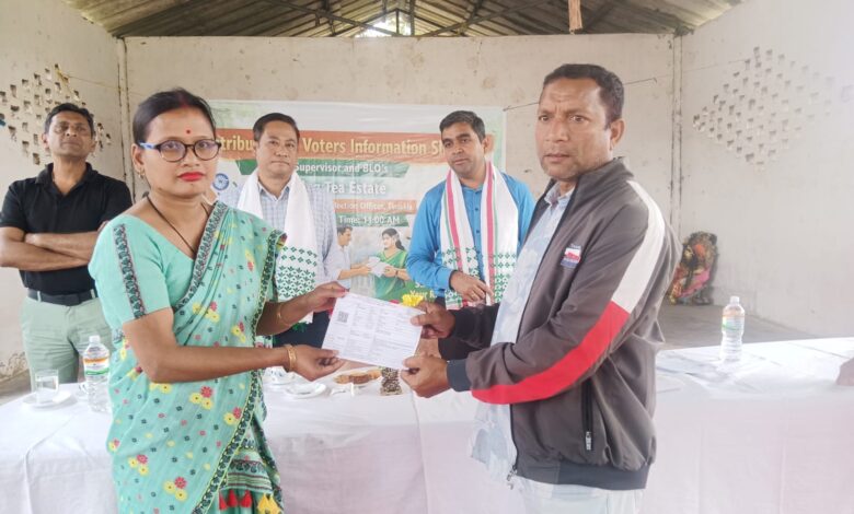 असम विधानसभा चुनाव-2026 के लिए 9 अप्रैल को होने वाले मतदान के लिए मतदाओं को जागरूक करने के उद्देश्य से तिनसुकिया निर्वाचन जिले के SVEEP (व्यवस्थित मतदाता शिक्षा एवं निर्वाचन भागीदारी) प्रकोष्ठ द्वारा मार्घेरिटा विधानसभा क्षेत्र के डिहिंग चाय बागान में आज गुरुवार को मतदाता जागरूकता कार्यक्रम का आयोजन किया गया। कार्यक्रम में तिनसुकिया जिला निर्वाचन अधिकारी व जिला आयुक्त सुमित सत्तावान और मार्घेरिटा सम जिला आयुक्त राहुल दलई की उपस्थिति में मतदाता सूचना पर्ची (Voter Information Slip) का वितरण किया गया। इसका मुख्य उद्देश्य मतदाओं को मतदान केंद्र, सीरियल नंबर, मतदान की तिथि एवं समय आदि के बारे में जागरूक करना था, ताकि वे सहज एवं सुव्यवस्थित ढंग से मतदान कर सकें।जिला आयुक्त के महत्वपूर्ण निर्देशजिला निर्वाचन अधिकारी सुमित सत्तावान ने उपस्थित मतदाओं को संबोधित करते हुए कहा कि पूर्व के चुनावों में तिनसुकिया जिले के कुछ क्षेत्रों में मतदान का प्रतिशत अपेक्षाकृत कम रहा था, लेकिन इस बार विधानसभा चुनाव-2026 में अधिकतम मतदाता भागीदारी सुनिश्चित करनी होगी। उन्होंने बूथ स्तर के अधिकारियों (BLO) की महत्वपूर्ण भूमिका पर जोर देते हुए मतदाता सूचना पर्ची को मात्र एक कागज नहीं, बल्कि लोकतांत्रिक उत्सव में भाग लेने का निमंत्रण पत्र बताया। सत्तावान ने स्पष्ट किया कि 9 अप्रैल को गुरुवार सुबह 7 बजे से शाम 5 बजे तक मतदान होगा। उन्होंने मतदाओं को अंतिम समय पर किसी असुविधा से बचने के लिए पूर्व में अपने मतदान केंद्र पर पहुंचने की सलाह दी। जिला आयुक्त ने मतदान केंद्रों पर उपलब्ध सुविधाओं का उल्लेख करते हुए कहा कि प्रत्येक केंद्र पर पुरुष एवं महिला के लिए अलग कतारें, वरिष्ठ नागरिक, दिव्यांगजन एवं गर्भवती महिलाओं के लिए प्राथमिकता प्राप्त पहुंच, शुद्ध पेयजल, चिकित्सा एवं स्वयंसेवकों की व्यवस्था रहेगी। उन्होंने मतदाओं को निर्देश दिया कि मतदान कक्ष में मोबाइल फोन ले जाना प्रतिबंधित है। मोबाइल को निर्दिष्ट स्थान पर जमा कर टोकन प्राप्त करना होगा तथा मतदान समाप्ति के बाद ही वापस ले सकेंगे। इसके अलावा EPIC या स्वीकृत 12 पहचान पत्रों में से कोई एक साथ लाने के निर्देश दिए। सत्तावान ने प्रशासन द्वारा चुनाव सुचारू रूप से सम्पन्न कराने के निरंतर प्रयासों एवं मतदान कर्मियों के कठिन परिश्रम की सराहना की तथा 1950 हेल्पलाइन नंबर के बारे में बताते हुए सक्रिय मतदान के लिए आह्वान किया। कार्यक्रम में BLOs ने अपने-अपने मतदान केंद्रों के मतदाओं को मतदाता सूचना पर्ची वितरित की। SVEEP प्रकोष्ठ ने ASD (Absent, Shifted, Dead) सूची के अनुसार कार्य करने के निर्देश दिए। कार्यक्रम में क्षेत्र के बड़ी संख्या में मतदाता, BLO, BLO पर्यवेक्षक एवं डिहिंग चाय बागान प्रब