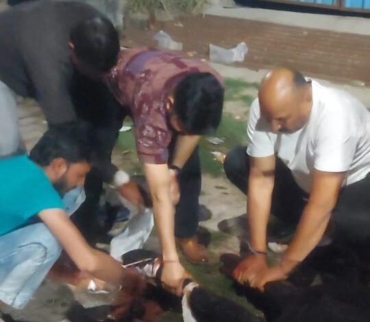 लोनी गाजियाबाद : गाज़ियाबाद के लोनी क्षेत्र स्थित खन्ना नगर कॉलोनी में 100 फुटा रोड पर एक नंदी (बैल) को अज्ञात वाहन ने जोरदार टक्कर मार दी, जिससे वह गंभीर रूप से घायल होकर सड़क पर गिर गया । घटना की सूचना मिलते ही गौ-रक्षकों की टीम और पुलिस मौके पर पहुंची और तुरंत राहत कार्य शुरू किया।गौ रक्षक रवि धामा ने मौके पर पहुंचकर घायल नंदी का प्राथमिक उपचार कराया । अधिक चोट लगने से हालत गंभीर होने के कारण रात करीब 10 बजे हरियाणा के झज्जर से गोकुलधाम गौ चिकित्साालय की एम्बुलेंस बुलाई गई। इसके बाद नंदी को बेहतर इलाज के लिए अस्पताल भेजा गया।