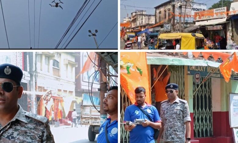 पाकुड़। रामनवमी के पावन अवसर को लेकर रामनवमी के मद्देनज़र पाकुड़ जिला प्रशासन और पुलिस प्रशासन पूरी तरह सतर्क नजर आए। शुक्रवार सुबह से ही सुरक्षा व्यवस्था को लेकर व्यापक तैयारियां की गईं। पुलिस प्रशासन द्वारा ड्रोन कैमरों के माध्यम से पूरे नगर क्षेत्र की निगरानी की गई और संवेदनशील स्थानों का जायजा लिया गया। इस दौरान थाना प्रभारी अनिल कुमार गुप्ता को पूरी मुस्तैदी के साथ सुरक्षा दिशा-निर्देशों का पालन कराते हुए देखा गया।श्रनगर थाना क्षेत्र समेत जिले भर के विभिन्न चौक-चौराहों पर पुलिस बल तैनात रहा और लोगों की जांच भी की जाती रही, ताकि किसी भी तरह की अप्रिय घटना को रोका जा सके। समाचार लिखे जाने तक ड्रोन कैमरे से हर गतिविधि पर पैनी नजर रखी जा रही थी। प्रशासन की इस सक्रियता से आम लोगों में सुरक्षा को लेकर भरोसा बढ़ा है और त्योहार शांतिपूर्ण तरीके से संपन्न कराने की दिशा में ठोस कदम उठाए जा रहे।
