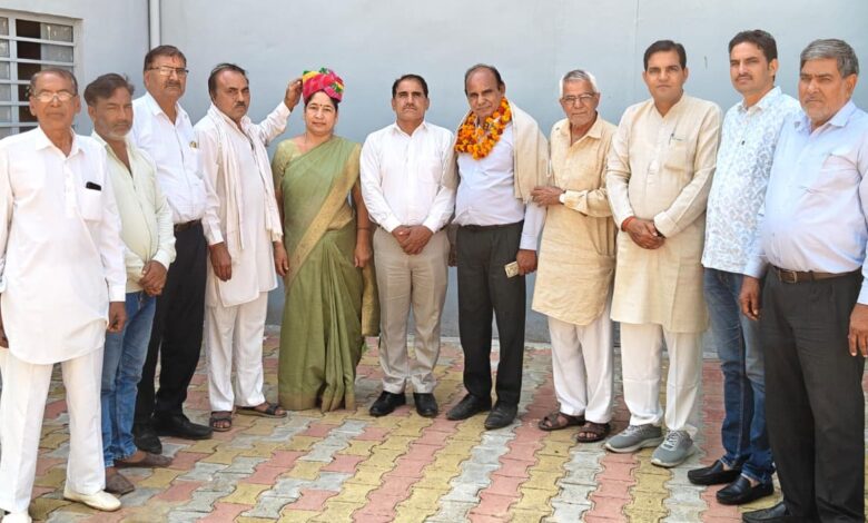 झुंझुनूं पिलानी। तिलक पब्लिक स्कूल पिलानी में राष्ट्रीय जाट महासंघ के पदाधिकारियों की मौजूदगी में निर्माणाधीन तेजाजी मंदिर क्यामसर के निर्माण में सहयोग के तौर पर तिलक पब्लिक स्कूल के डायरेक्टर विरेन्द्र सिंह सिहाग एवं प्रिंसिपल सुनिता सिहाग ने 51 हजार रुपये नकद व निर्माण सामग्री देने की घोषणा करने पर राष्ट्रीय जाट महासंघ के पदाधिकारीयों द्वारा शाॅल, साफा एवं फूलमाला पहनाकर स्वागत किया गया। राष्ट्रीय जाट महासंघ के जिला सलाहकार राजेन्द्र बांगड़वा, जिला उपाध्यक्ष सूबे. विरेन्द्र कोठारी, प्रभारी अत्तर सिंह काजला, ब्लॉक अध्यक्ष विरेन्द्र पूनियां, प्रवक्ता कर्मवीर चौधरी, ब्लॉक संरक्षक सुनिल नेहरा एवं ब्लॉक उपाध्यक्ष राजेन्द्र पूनियां ने स्वागत किया। राष्ट्रीय जाट महासंघ के जिला महासचिव सत्यनारायण पूनियां एवं युवा तेजा सेना के ब्लॉक अध्यक्ष अशोक बुडानिया ने शिक्षा प्रेमी विरेन्द्र सिंह सिहाग एवं शिक्षाविद् सुनिता सिहाग द्वारा शानदार घोषणा करने पर धन्यवाद ज्ञापित किया। राष्ट्रीय जाट महासंघ के प्रदेश अध्यक्ष डॉ. विरेन्द्र क्यामसरिया ने बताया कि जनसहयोग से निर्माणाधीन लोकदेवता तेजाजी महाराज का मन्दिर भारत का सबसे बड़ा 165 फीट ऊंचा मन्दिर होगा, जिसमें सभी का तन मन धन से सहयोग मिल रहा है।
