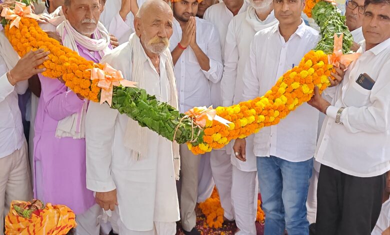 जिलाध्यक्ष (पर्यावरण प्रकोष्ठ) हरिओम यादव का मैंनपुर बास मे जोरदार स्वागत