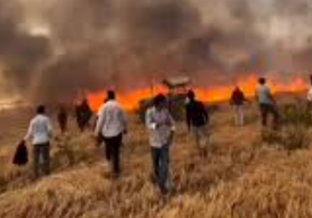 अडींग में बिजली तारों की चिंगारी से खेत में लगी आग