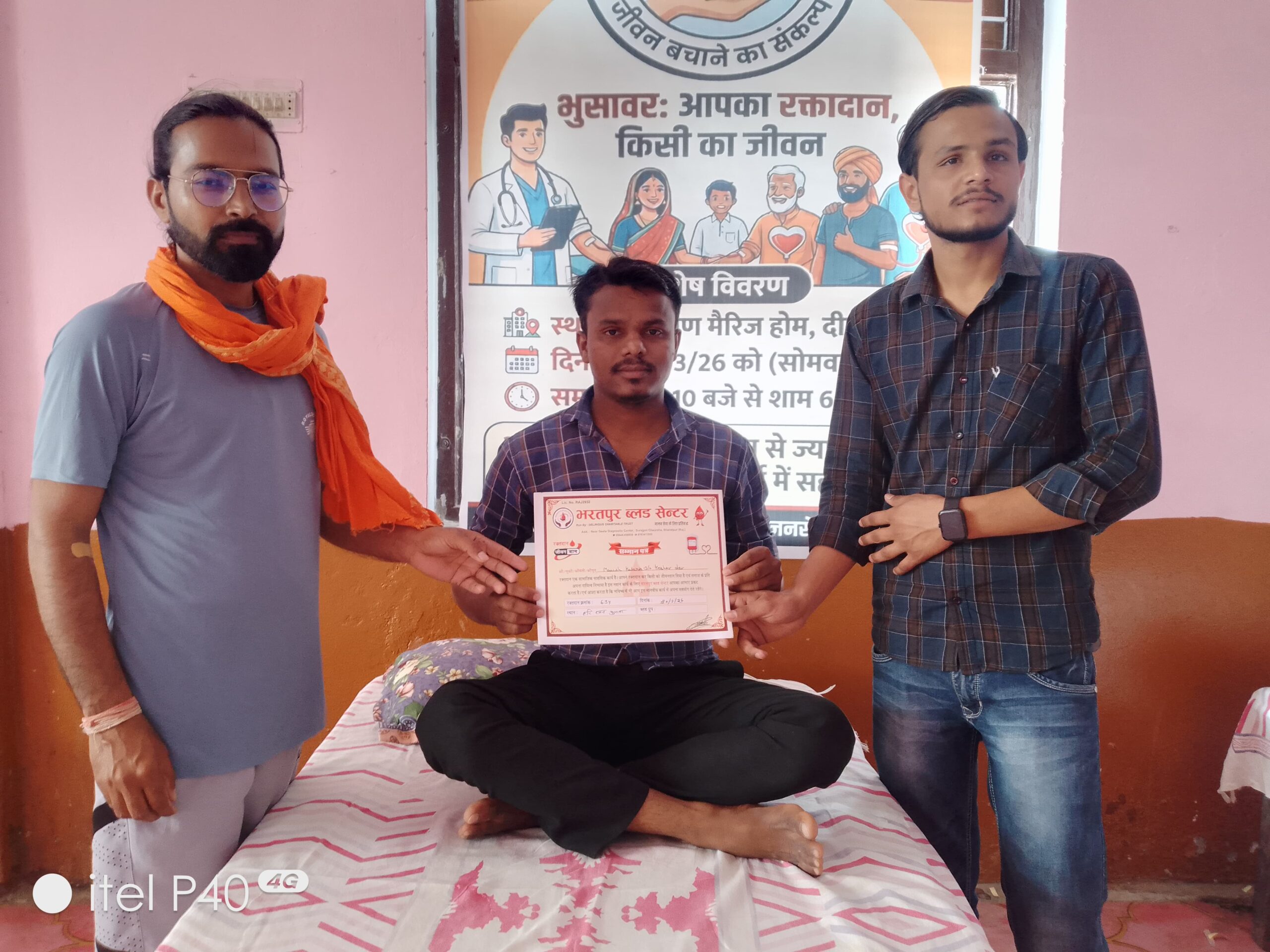 मानव सेवा के लिए प्रतिबद्ध भरतपुर ब्लड सेन्टर की टीम ने किया रक्त का संग्रह