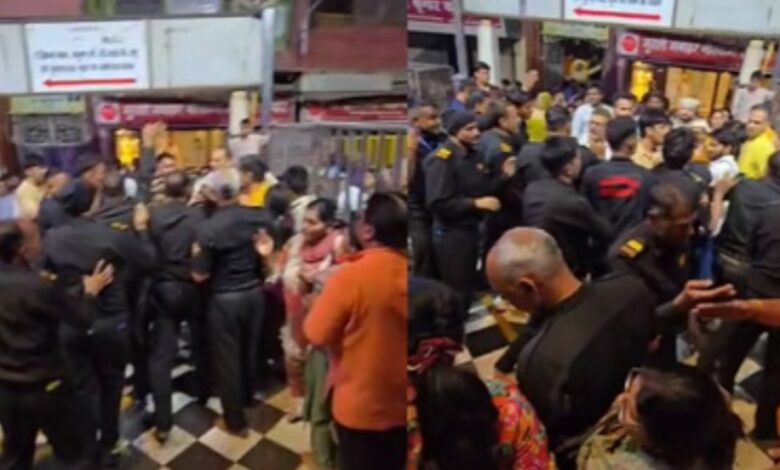 मथुरा। वृंदावन में श्रीबांकेबिहारी मंदिर के प्रवेश द्वार पर निजी सुरक्षा कर्मियों और स्थानीय दुकानदारों में मारपीट हो गई। आरोप है कि सुरक्षाकर्मियों ने दुकानदारों की पिटाई कर दी। झगड़े के दौरान महिला श्रद्धालुओं को भी चोटें आईं। पुलिस ने किसी तरह दोनों पक्षों को अलग किया। घटना की वीडियो सोशल मीडिया पर वायरल हो गया। पुलिस मामले की जांच कर रही है। कामदा एकादशी पर रविवार को श्रीबांकेबिहारी मंदिर में खासी भीड़ थी। इसी दरम्यान स्थानीय दुकानदार मंदिर में दर्शन को जा रहे थे। सुरक्षा कर्मियों से एक दुकानदार का विवाद हो गया। इस पर अन्य दुकानदार भी इकट्ठे हो गए। कुछ ही देर में प्रवेश द्वार पर दोनों पक्ष भिड़ गए। आरोप है कि सुरक्षाकर्मियों ने दुकानदारों के साथ ही श्रद्धालुओँ के साथ ही हाथापाई कर डाली। इस दौरान एक महिला श्रद्धालु गिरकर घायल हो गई। पुलिस ने किसी तरह मामले को संभाला। सीओ सदर पीपी सिंह का कहना है दुकानदार और सुरक्षाकर्मियों के बीच विवाद हुआ था, तहरीर के आधार पर कार्रवाई की जाएगी। मंदिर में निजी सुरक्षा कर्मियों के विवाद का यह कोई पहला मामला नहीं है। आए दिन मारपीट के वीडियो वायरल हो रहे हैं, लेकिन इस तरह की घटनाएं थम नहीं रही हैं। मंदिर प्रबंधन ने सुरक्षा में राजस्थान सिक्योरिटी सर्विस के सुरक्षाकर्मियों को तैनात किया है।