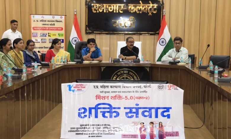 बरेली : मिशन शक्ति विशेष अभियान फेज-5.0 द्वितीय चरण के अंतर्गत हक की बात जिलाधिकारी के साथ व शक्ति संवाद कार्यक्रम का आयोजन जिलाधिकारी की अध्यक्षता में कलेक्ट्रेट सभागार बरेली में किया गया। उक्त कार्यक्रम में संतोष कुमार अपर जिलाधिकारी(वि0/रा0), राजेश कुमार वर्मा सिटी मजिस्ट्रेट, श्रीमती मोनिका राणा जिला प्रोबेशन अधिकारी, सौरभ सिंह संरक्षण अधिकारी, श्रीमती चंचल गंगवार केंद्र प्रबंधक वन स्टॉप सेंटर, श्रीमती रिंकी सैनी जिला मिशन कॉर्डिनेटर हब फॉर एंपावरमेंट ऑफ वूमेन, रसना गुप्ता परामर्शदाता, श्रीमती हरविंदर कौर, श्रीमती शारीन, श्रीमती सुमन गंगवार पदाधिकारी एवं कर्मचारी उपस्थित रहे। सर्वप्रथम जिला प्रोबेशन अधिकारी बरेली द्वारा महिला कल्याण विभाग के अन्तर्गत संचालित कल्याणकारी योजनाओं जैसे-मुख्यमंत्री कन्या सुमंगला योजना, मुख्यमंत्री बाल सेवा योजना(कोविड/सामान्य), पति की मृत्यु उपरान्त निराश्रित महिला पेंशन योजना के विषय में जानकारी दी गयी। जिलाधिकारी द्वारा मुख्यमंत्री बाल सेवा योजना(कोविड/सामान्य), मुख्यमंत्री कन्या सुमंगला योजना के लाभार्थियों एवं कस्तूरबा गांधी आवासीय विद्यालय सुभाषनगर बरेली की छात्राओं के साथ संवाद किया गया। कार्यक्रम में उपस्थित सेजल ,साक्षी सागर ,लक्ष्मी सागर कक्षा 7 की छात्रा सृष्टि मिश्रा, अनामिका गंगवार, रश्मि कक्षा 8 की छात्राओं के द्वारा सिविल परीक्षा, सेना/ फौज, भारतीय पुलिस सेवा में जाने से संबंधित प्रश्न किए, जिलाधिकारी महोदय द्वारा सभी छात्राओं को सिविल परीक्षा, सेना/ फौज, भारतीय पुलिस सेवा परीक्षा की तैयारी करने की जानकारी प्रदान की गई lतत्पश्चात जिलाधिकारी द्वारा कार्यक्रम में उपस्थित महिलाओं की समस्याओं को सुनते हुए उनके निराकरण हेतु सम्बन्धित अधिकारियों को निर्देशित किया गया।