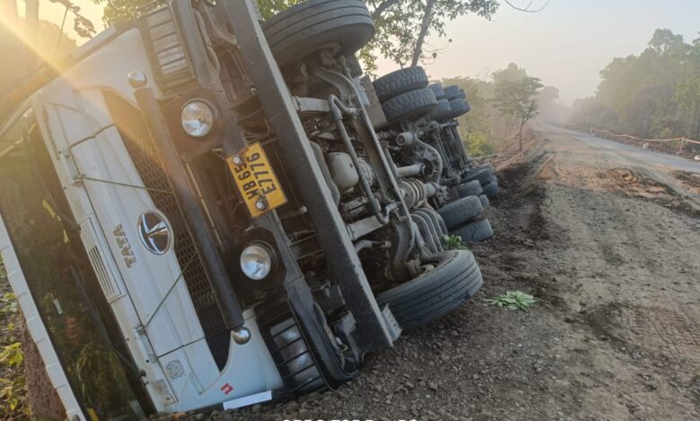 लिट्टीपाड़ा में गिट्टी लदा ट्रेलर पलटा, बाल-बाल बचे चालक व उपचालक