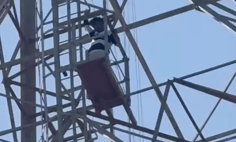 मोबाइल टावर पर चढ़कर युवक ने किया हाई वोल्टेज ड्रामा