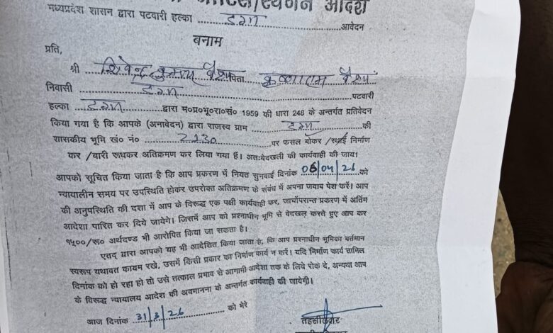 पटवारी को हटाने की शिकायत की तो शिकायतकर्ता को भेज दी बेदखली कि नोटिस