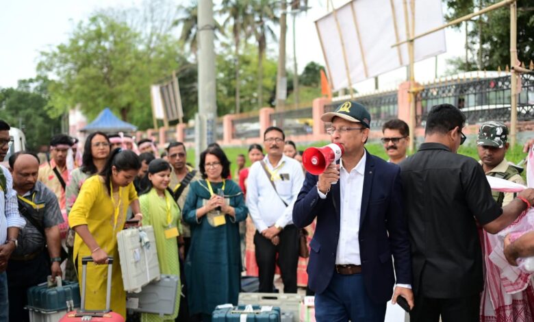 असम के नगांव जिले के आयुक्त ने गमछा भेंटकर मतदान कर्मियों को उत्साहित किया