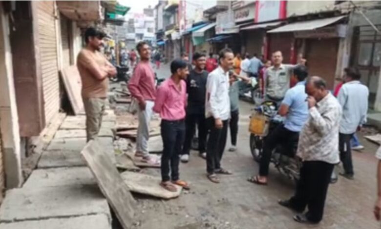 कोसीकलां में नाले ढकने से दुकानें हुईं नीची, हंगामा