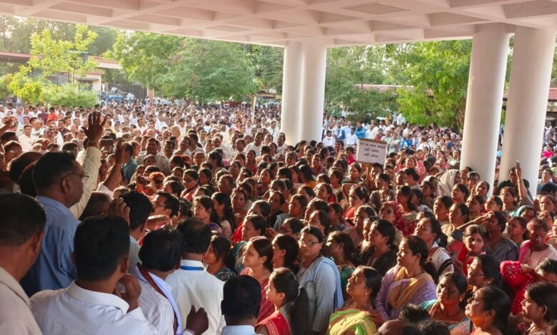 शिवाजी ऑडिटोरियम में उमड़ा शिक्षकों का जनसैलाब, रैली निकालकर पहुंचे कलेक्टर कार्यालय