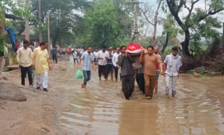 बलदेव के गांव में श्मशान घाट के रास्ते में भरा पानी