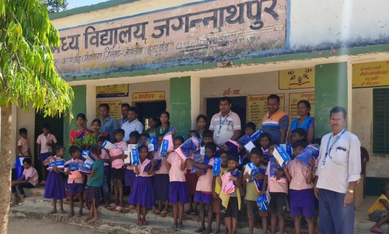 जामताड़ा। जिले के करमाटांड प्रखंड के उत्क्रमित मध्य विद्यालय जगन्नाथपुर में जामताड़ा के जिला शिक्षा पदाधिकारी चार्ल्स हेम्ब्रम का पारंपरिक आदिवासी रीति-रिवाज से लोटा-थाली के साथ भव्य स्वागत किया गया। इस अवसर पर उन्हें पौधे एवं फूलों से निर्मित पुष्पगुच्छ भेंट किया गया, जिसे विद्यालय के बच्चों ने बड़े उत्साह के साथ प्रस्तुत किया। छात्र-छात्राओं ने स्वागत गान गाकर अतिथि का अभिनंदन किया, जिससे पूरा वातावरण उत्सवमय हो उठा। कार्यक्रम के दौरान जिला शिक्षा पदाधिकारी चार्ल्स हेम्ब्रम ने कक्षा 1 एवं 2 के कुल 49 छात्र-छात्राओं को दो-दो सेट पोशाक, एक सेट स्वेटर तथा एक सेट जूता-मौजा वितरित किया। पोशाक पाकर बच्चों के चेहरे पर खुशी देखते ही बन रही थी।