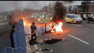 दिल्ली-देहरादून हाईवे पर चलती कार में भीषण आग