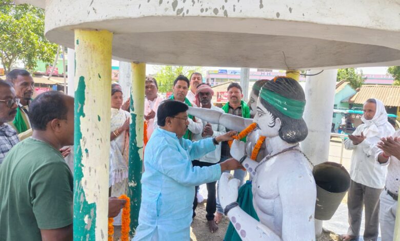 MLA Stephen Marandi garlanded the statues of Sidhu and Kanhu on their birth anniversary and paid homage to the brave martyrs.