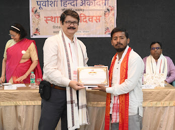 विश्वनाथ : पूर्वाशा हिंदी अकादमी, जोरहाट का नवम स्थापना दिवस दिनांक 12/4/26 को होटल क्लबवे ग्रैंड में मनाया गया। कार्यक्रम का शुभारंभ मुख्य अतिथि जेबी यूनिवर्सिटी के डीन डा. सुरोजित शर्मा जी, विशिष्ट अतिथि ओएनजीसी के आदरणीय संत जी, अकादमी की संस्थापक अध्यक्ष रूनू बरुवा जी, संस्थापक सचिव जयश्री शर्मा और संस्थापक कोषाध्यक्ष जिमी मोदी के आसन ग्रहण करने के साथ हुआ जिन्हें अकादमी के नवीनतम आजीवन सदस्य आयुष्मान बरुवा द्वारा मंच पर आमंत्रित किया गया।दीप प्रज्वलन के पश्चात् वंदना मिश्रा द्वारा गणेश वंदना तथा ज्योमी बरुवा हजारिका द्वारा सरस्वती वंदना प्रस्तुत की गई। सभी उपस्थित सदस्यों व अतिथियों द्वारा स्वयं का परिचय देने के पश्चात् अध्यक्ष रूनू बरूवा जी ने सभी उपस्थित विद्वतजनों का स्वागत करते हुए अपने स्वागत भाषण में अकादमी के उद्देश्यों पर प्रकाश डालते हुए भविष्य की परियोजनाओं के बारे में जानकारी दी, जिसमें पूरे राज्य स्तर पर हिंदीतर भाषी छात्रों के बीच बाल साहित्य प्रतियोगिता कराने का निर्णय प्रमुख है। हमारे वरिष्ठ संरक्षक एनसी करनानी जी और श्रीप्रकाश बरूवा जी ने सभा को संबोधित करते हुए अकादमी के कार्यों की सराहना की।तत्पश्चात जोरहाट के बाहर से आए हुए अतिथियों को फुलाम गामोछा पहना कर उनका सम्मान किया गया। उज्जैन के चुन्नीलाल परमार जी, विश्वनाथ चारिआलि के हिंदी सेवी संतोष कुमार महतो जी, सैयदा आनोवारा खातून जी, मनीषा पाल एवं मौसम कुमारी राय जी तथा सिलचर की डोली शाह जी, तिनसुकिया की सुधा केजरीवाल जी और ओएनजीसी से अवकाश प्राप्त जयाश्री सैकिया जी ने पूर्वाशा अकादमी को बधाई देते हुए अपने-अपने वक्तव्य प्रस्तुत किये।इसके पश्चात् सचिव जयश्री शर्मा द्वारा सचिव की रिपोर्ट तथा कोषाध्यक्ष जिमी मोदी द्वारा गत वर्ष के आय-व्यय का ब्यौरा प्रस्तुत किया गया।नीलाक्षी जी द्वारा विशिष्ट अतिथि का परिचय प्रस्तुत करने के पश्चात् विशिष्ट अतिथि संत जी द्वारा सभा को संबोधित किया गया। उन्होंने अकादमी के कार्यों की सराहना करते हुए पदाधिकारियों की तपस्या की सराहना की और सभी सदस्यों को सहयोग करने की सलाह दी। उन्होंने कहा हिंदी भाषा जिस तरह लिखी जाती है इस तरह बोली भी जाती है जैसे केमेस्ट्री चेमेस्ट्री नहीं होती। यह हमारी धरोहर है और सभी लोगों को जोड़ने वाली कड़ी का काम करती है।प्रेम गुप्ता जी द्वारा मुख्य अतिथि का परिचय पढ़ने के पश्चात् मुख्य अतिथि डा॰ सुरोजीत शर्मा जी ने अपने संबोधन में अकादमी को बधाई देते हुए कहा कि विभिन्न भाषाओं, लोगों व संस्कृतियों के बीच हिंदी भाषा सेतु का कार्य करती है। तत्पश्चात् पूर्वाशा की विभिन्न शाखोंओं को सम्मान पत्र तथा उत्तम कार्य हेतु मेमोंटो प्