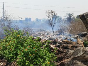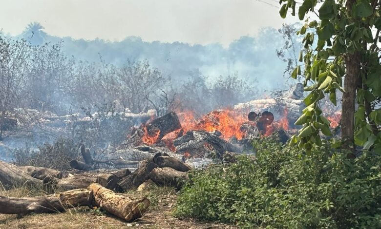 एनएचआई लकड़ी डंप में भीषण आग, लाखों की लकड़ी राख