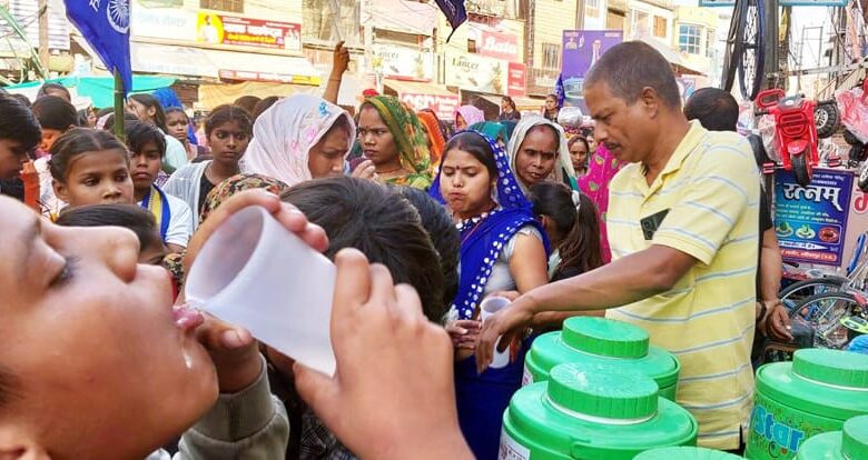 अंबेडकर जयंती पर महावीर प्याऊ के सामने निशुल्क पेयजल सेवा