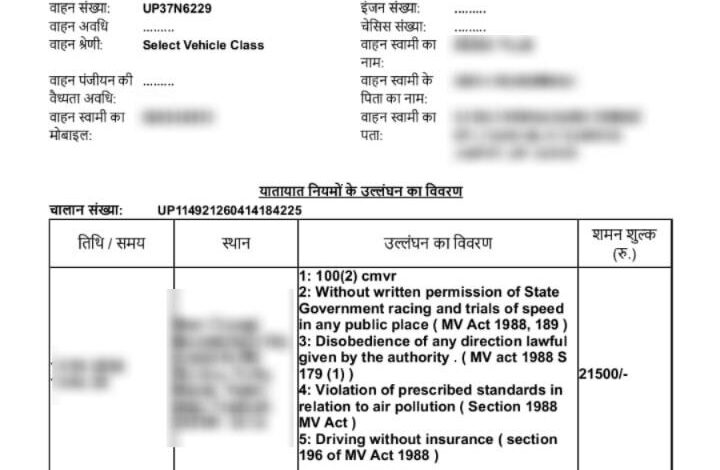 हापुड (यूपी) – जनपद हापुड़ में दिल्ली-लखनऊ हाईवे NH 9 पर चलती कार पर एक युवक का अर्धनग्न होकर स्टंट करने का वीडियो सोशल मीडिया पर जमकर वायरल हुआ , जिसका संज्ञान लेते हुए हापुड की यातायात पुलिस ने कार का एमवी एक्ट के अन्तर्गत कार्यवाही कर उक्त कार का कुल 21,500/- रुपये का ऑनलाइन चालान कर दिया ।