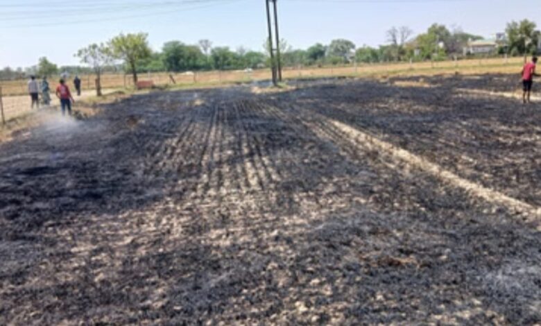 मथुरा के सोंख में हाईटेंशन लाइन से दो किसानों की पराली जलकर हुई राख