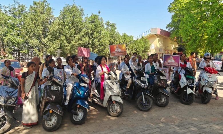 नारी शक्ति वंदन रैली में महिला शिक्षिकाओं ने स्कूटी से भरा हुंकार