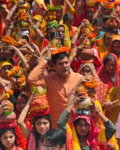 पूरे मार्ग में भक्ति, आस्था और उत्साह का अद्भुत वातावरण देखने को मिला। महिलाएं भजन एवं लोकगीत गाते हुए आगे बढ़ रही थीं, जिससे वातावरण पूर्णतः आध्यात्मिक रंग में रंग गया।