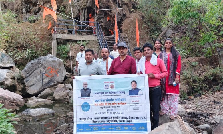 बैतूल। जल गंगा संवर्धन अभियान 2026 और जल स्रोत सेवा समागम के द्वितीय चरण के अंतर्गत देवना नदी के उद्गम स्थल ‘जठान देव’ पर एक वृहद स्वच्छता अभियान एवं विधिवत पूजन कार्यक्रम का आयोजन किया गया। जल स्रोतों के संरक्षण और प्रकृति के प्रति जागरूकता जगाने के उद्देश्य से आयोजित इस कार्यक्रम में स्थानीय स्वयंसेवकों और सामाजिक संस्थाओं ने बढ़-चढ़कर हिस्सा लिया और श्रमदान कर एक अनूठी मिसाल पेश की।