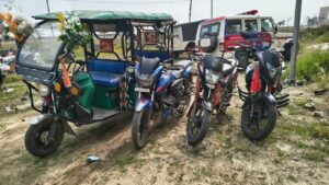 7. तीन मोटरसाईकिल– ।. नीला रंग का TVS Apache रजि०नं0-JH-17AD-6582,॥. काला रंग का होन्डा साईन मोटरसाईकिल जिसका चे० नं0-ME4JC94EGSG289943