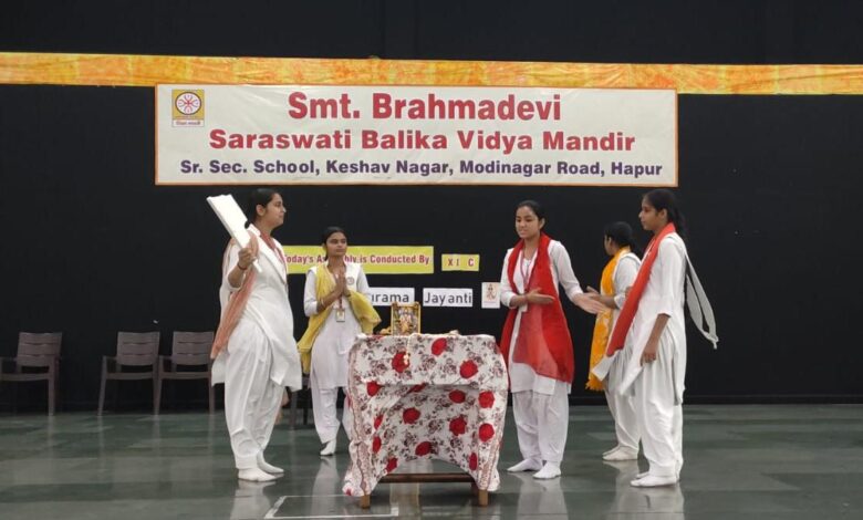 हापुड़ – हापुड़ के मोदीनगर मार्ग स्थित श्रीमती ब्रह्मादेवी सरस्वती बालिका विद्या मन्दिर, उच्चतर माध्यमिक विद्यालय में ‘अक्षय तृतीया एवं परशुराम जयन्ती’ कार्यक्रम का आयोजन किया गया। इस कार्यक्रम में विद्यालय की प्राचार्या श्रीमती मीनाक्षी यादव ने ‘अक्षय तृतीया पर्व ‘ के महत्व को बताया। कक्षा XI की छात्राओं द्वारा ‘सीता स्वयंवर में परशुराम संवाद’ को नाटिका के माध्यम से प्रस्तुत भी किया गया। कक्षा XII की छात्रा ने भगवान परशुराम जी के जीवन पर प्रकाश डालते हुए अपने विचार भी व्यक्त किए। समस्त कार्यक्रम प्रधानाचार्या श्रीमती मीनाक्षी यादव के दिशा-निर्देशन में सम्पन्न हुआ।