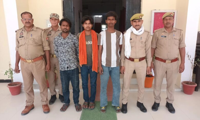 पुलिस अधीक्षक के निर्देश पर चलाए जा रहे विशेष अभियान के तहत कोतवाली जालौन पुलिस टीम ने मुकदमा संख्या 79/26 धारा 305/317(2) बीएनएस से संबंधित मामले में आरोपियों की तलाश शुरू की थी। इसी क्रम में 21 अप्रैल 2026 को पुलिस ने ग्राम सारंगपुर रोड पर गुरु मस्तराम आश्रम के पास, मुख्य मार्ग से करीब 200 मीटर पहले तीनों आरोपियों को गिरफ्तार कर लिया।