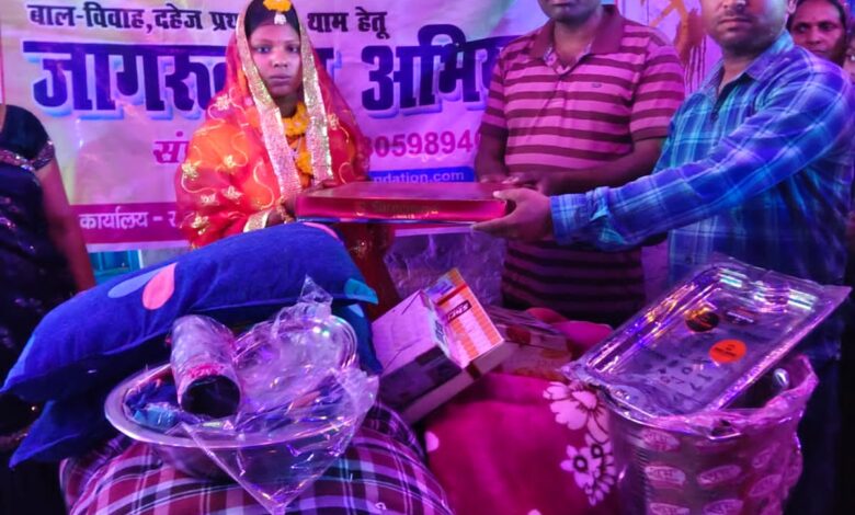 गोड्डा। प्रखंड अंतर्गत निपानिया  पंचायत के सुंदरमोड़ के मंटू शाह की पुत्री प्रेमलता कुमारी की शादी 21/04/2026 को पाकुड़ जिले के ग्राम देवपड़ा पोस्ट डागापहाड़ थाना हिरणपुर के पिता कालू शाह के पुत्र धीरेंद्र  कुमार से हो रही है। इस अवसर पर संस्था के द्वारा कन्या को विदाई सामग्री में ट्रंक, तोषक, कंबल, बेडशीट, तकिया, चुनरी, स्टील बर्तन सेट, वर वधू का वस्त्र एवं श्रृंगार गोड्डा जिला के सुंदरपहाड़ी प्रखंड के संस्था सहयोगी हराधन शर्मा के हाथों दिया गया। वार्ड पार्षद प्रफुल्ल महतो एवं ग्राम प्रधान प्रेमलाल महतो के अलावा आदि ग्रामीण लोग मौजूद थे। सभी ने इस नेक कार्य को खूब सराहा एवं साधुवाद दिया।