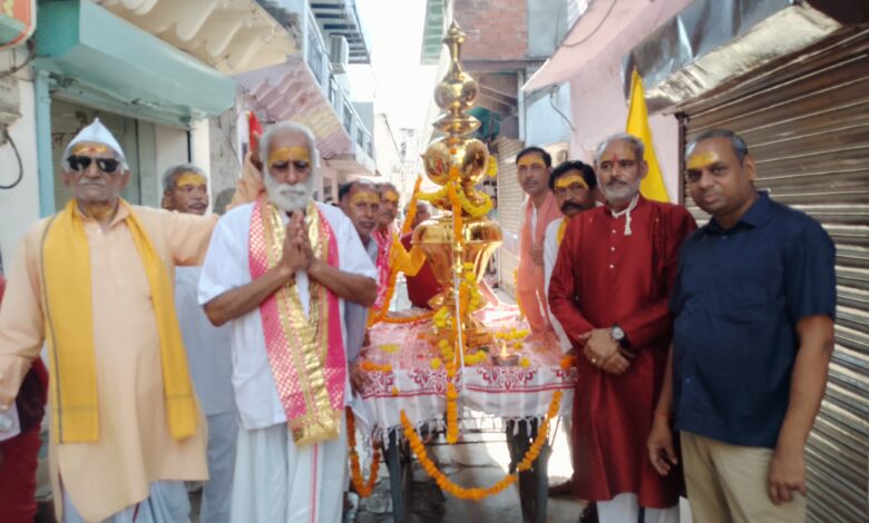मन्दिर के गर्भ गृह की मूर्तियों के ऊपर सकारत्मक ऊर्जा को लेकर निकली कलश यात्रा