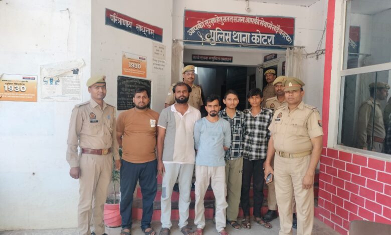 कोटरा (जालौन)। कस्बा कोटरा में लंबे समय से आनलाइन सट्टा, जुआ जैसी सामाजिक एवं विसंगति के विरुद्ध चलाये जा रहे अभियान के दौरान थाना कोटरा पुलिस द्वारा आनलाइन आपीएल सट्टे का काला कारोबार कर आर्थिक लाभ प्राप्त करने वाले गैंग सरगना सहित 5 सटोरियों को बाईपास तिराहा कस्वा कोटरा कस्वा कोटरा से गिरफ्तार करने मे सफलता प्राप्त की गयी।
