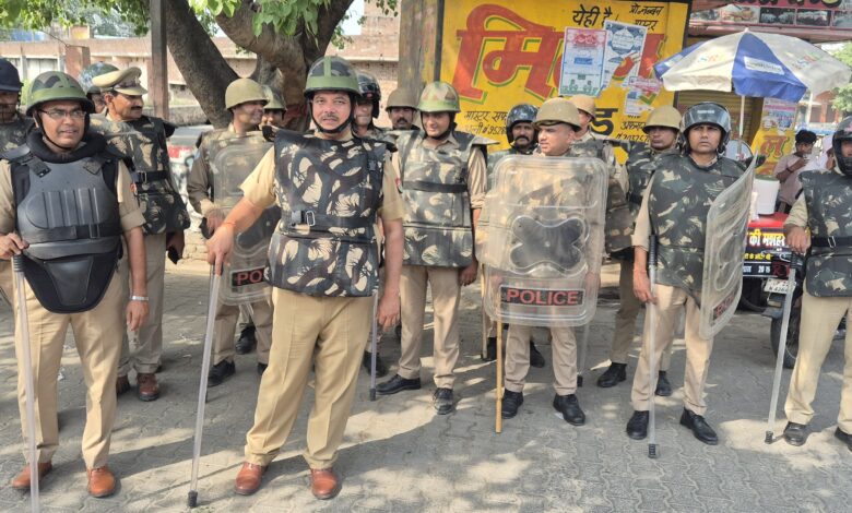 सीओ के नेतृत्व में पुलिस ने निकाला फ्लैग मार्च