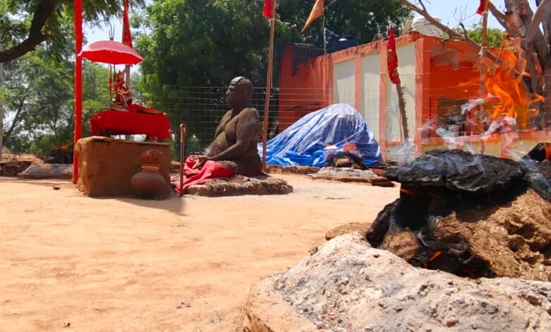 अंगारों के बीच रसगन आश्रम में स्वामी बालकादेवाचार्य की कठोर पंच धूणी अग्नि तपस्या
