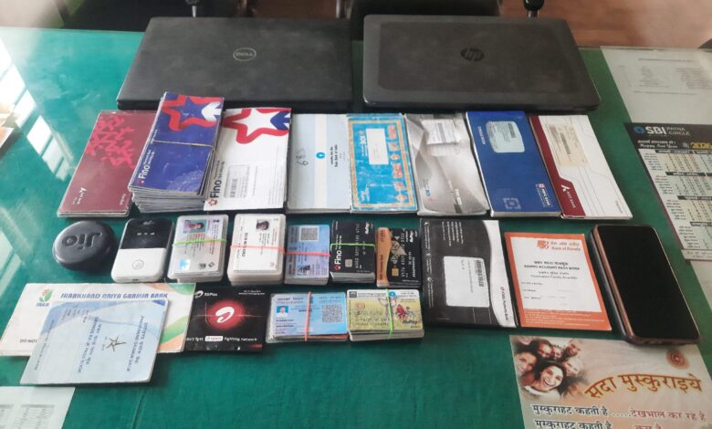(21) HDFC चेकबुक-02 (एक चेकबुक मो० मुबारक अंसारी के नाम से) (22) BOI चेकबुक-01 (मो) मुबारक अंसारी के नाम से) (23) बैंक ऑफ बडौदा पासबुक- 01 (24) FINO बैंक का पासबुक – 23 (25) BOI पासबुक – 04 (26) SBI पासबुक-04 (27) AXIS बैंक पासबुक- (04 (28) AXIS बैंक चेकबुक – 04 (29) सीम कार्ड-03 (02 110, 01 AIRTEL) (30) काला रंग का HP कंपनी का पुराना लेपटॉप- 01 (31) काला रंग का DELL कंपनी का पुराना लेपटॉप – 01 (32) काला रंग का JIO कंपनी का डोंगल – 02 (33) ओप्पो कंपनी का एंड्रयाड मोबाईल- 02 बरामद किया गया है। इस छापामारी अभियान में मुख्य रूप से सपन कुमार महथा पु०नि० सह थाना प्रभारी विष्णुगढ पु०अ०नि० अनुपम प्रकाश पु०अ०नि० आशिष कुमार सिंह ग्लेडिस बरजो कंचन कुमारी सहित थाना रिजर्व बल शामिल थे।