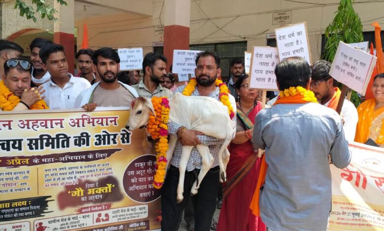 जालौन में गूंजा ‘गौ सम्मान’ का स्वर: राष्ट्रमाता का दर्जा दिलाने को सड़कों पर उतरे गौभक्त, तहसीलदार को सौंपा ज्ञापन