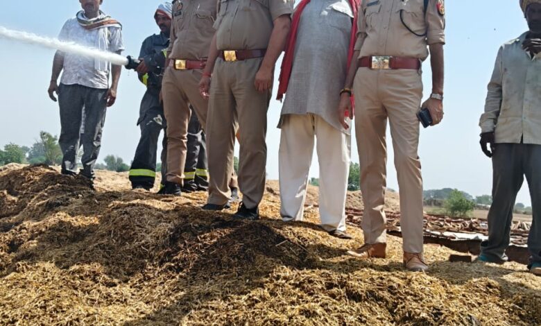 रेढ़र में रंजिशन लगायी आग से तीस ट्रक भूसा जल कर हुआ राख