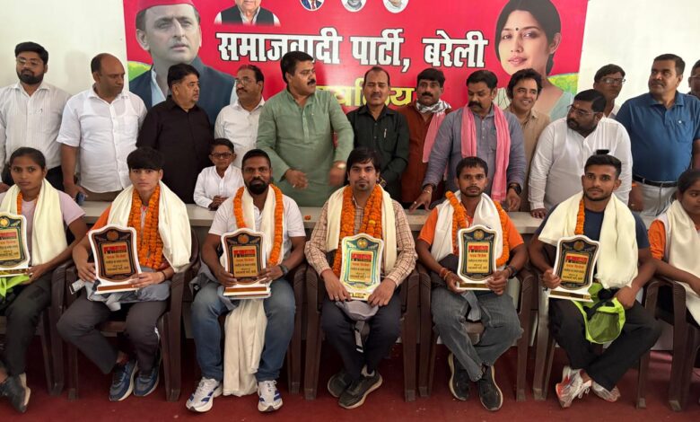 देश और दुनिया में बरेली का नाम रोशन करने वाले खिलाड़ियों का सपा कार्यालय पर हुआ सम्मान
