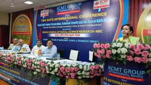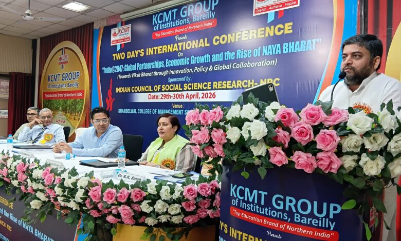 बरेली : रिठौरा स्थित के.सी.एम.टी. कॉलेज में आई०सी०एस०एस०आर० के संयुक्त तत्वावधान में थो-दिवसीय अंतरराष्ट्रीय कॉन्फ्रेंस का आयोजन किया गया, जिसका विषय “भारत @2047” वैश्विक साझेदारी, आर्थिक विकास एवं नए भारत का उदय’ रहा। कार्यक्रम का शुभारंभ भी सरस्वती के पूजन एवं दीप प्रज्वलन के साथ हुआ, जिसमें मुख्य अतिथि दिल्ली विश्वविद्यालय के प्रो. प्रवीण कुमार तिवारी, विशिष्ट अतिथि बरेली कॉलेज की उप-प्राचार्या प्रो. वंदना शर्मा, विभाग प्रचारक आर.एस.एस. श्री कृष्णा जी, डॉ. स्वतंत्र कुमार, महाविद्यालय के चेयरमैन गिरधर गोपाल, प्रबंध निदेशक डॉ. विनय खंडेलवाल, महानिदेशक डॉ. अमरेश कुमार एवं प्राचार्य डॉ. आर.के. सिंह सहित अन्य गणमान्य अतिथियों की गरिगामयी उपस्थिति रही। इस अवसर पर महानिदेशक डॉ. अमरेश कुमार ने सभी अतिथियों का स्वागत करते हुए सम्मेलन की रूपरेखा प्रस्तुत की। अपने उद्द्बोधन में मुख्य अतिथि प्रो. प्रवीण कुमार तिवारी ने कहा कि विकसित भारत @2047 के लिए वैश्विक साझेदारी अत्यंत आवश्यक है तथा शिक्षा और शोध के माध्यम से आर्थिक प्रगति को गति दी जा सकती है। उप-प्राचार्या प्रो. वंदना शर्मा ने शिक्षा को नए भारत के निर्माण की आधारशिला बताते हुए नवाचार और गुणवत्ता पर बल दिया। विभाग प्रचारक श्री कृष्णा जी ने सांस्कृतिक मूल्यों और आधुनिक दृष्टिकोण के संतुलन को नए भारत की पहचान बताया, जबकि डॉ. स्वतंत्र कुमार ने आत्मनिर्भरता एवं नवाचार को आर्थिक विकास का आधार बताया। प्रथम दिवस के द्वितीय सत्र में आयोजित प्रथम तकनीकी सत्र में अध्यक्ष प्रो. अशुतोष प्रिय एवं सह-अध्यक्ष प्रो. सुबोध धवन के मार्गदर्शन में शोधपत्र प्रस्तुत किए गए। प्रो. अशुतोष प्रिय ने अपने अध्यक्षीय वक्तव्य में कहा कि गुणवत्तापूर्ण शोध राष्ट्र के विकास की आधारशिला है तथा विद्यार्थियों को नवाचार की दिशा में आगे बढ़ना चाहिए, वहीं सह-अध्यक्ष प्रो. सुबोध धवन ने प्रतिभागियों को शोध की उपयोगिता और उसके व्यावहारिक पक्ष पर ध्यान देने के लिए प्रेरित किया। इसी क्रम में दूसरे तकनीकी सत्र में अध्यक्ष सी०ए० ईशिता विद्यार्थी की अध्यक्षता में विभिन्न महाविद्यालयों एवं शहरों से आए शिक्षकों, विद्यार्थियों एवं शोधार्थियों ने अपने-अपने शोध पत्र प्रस्तुत किए। कार्यक्रम के अंत में महाविद्यालय के प्रबंध निदेशक डॉ. विनय खंडेलवाल ने धन्यवाद ज्ञापन प्रस्तुत किया कार्यक्रम का संचालन प्रवक्ता मुकुल गुप्ता ने किया ।