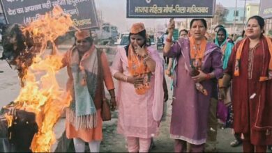 राहुल गांधी की कथित अभद्र टिप्पणी के विरोध में भाजपा महिला मोर्चा का प्रदर्शन