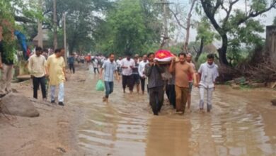 बलदेव के गांव में श्मशान घाट के रास्ते में भरा पानी