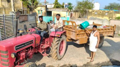 ठीकरिया गांव में आठ दिन सेआया कच्चरा उठाने वाला ट्रैक्टर