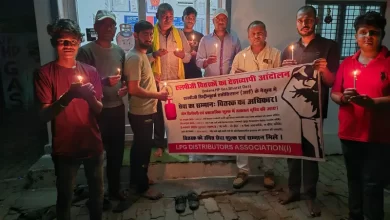 प्रयागराज में हाथों में कैंडल लेकर LPG वितरकों का शांतिपूर्ण प्रदर्शन